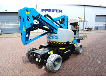 This electric articulating boomlift has a valid inspection and can be sold with warranty. Inform about our conditions! Manufacturer: Genie Typ: Z-33/18 Building year: 2020 Fuel: Electric Serial number: Z3318M2825 Measurements Working height maximum: 12 m Horizontal reach maximum: 5.57 m Up and over clearance max: 4.28 m Platform length: 0.76 m Platform width: 1.17 m Length - stowed: 4.17 m Width: 1.50 m Height - stowed: 1.98 m Productivity Lift capacity 200 kg Turntable rotation 400° non-continuous Turntable tailswing - riser up 0.15 m Turntable tailswing - riser down 1.16 m Drive speed - stowed 6 km/h Raised retracted 0.75 km/h Raised extended 0.23 km/h Gradeability - stowed: 30% Turning radius - inside: 1.9 m Controls 24 V DC proportional Tyres 56x23x44 cm * CE (Declaration of Conformity) More detailed pictures / product movie on our website. pfeifermachinery.com Above specifications are subject to change without prior notice and subject to errors